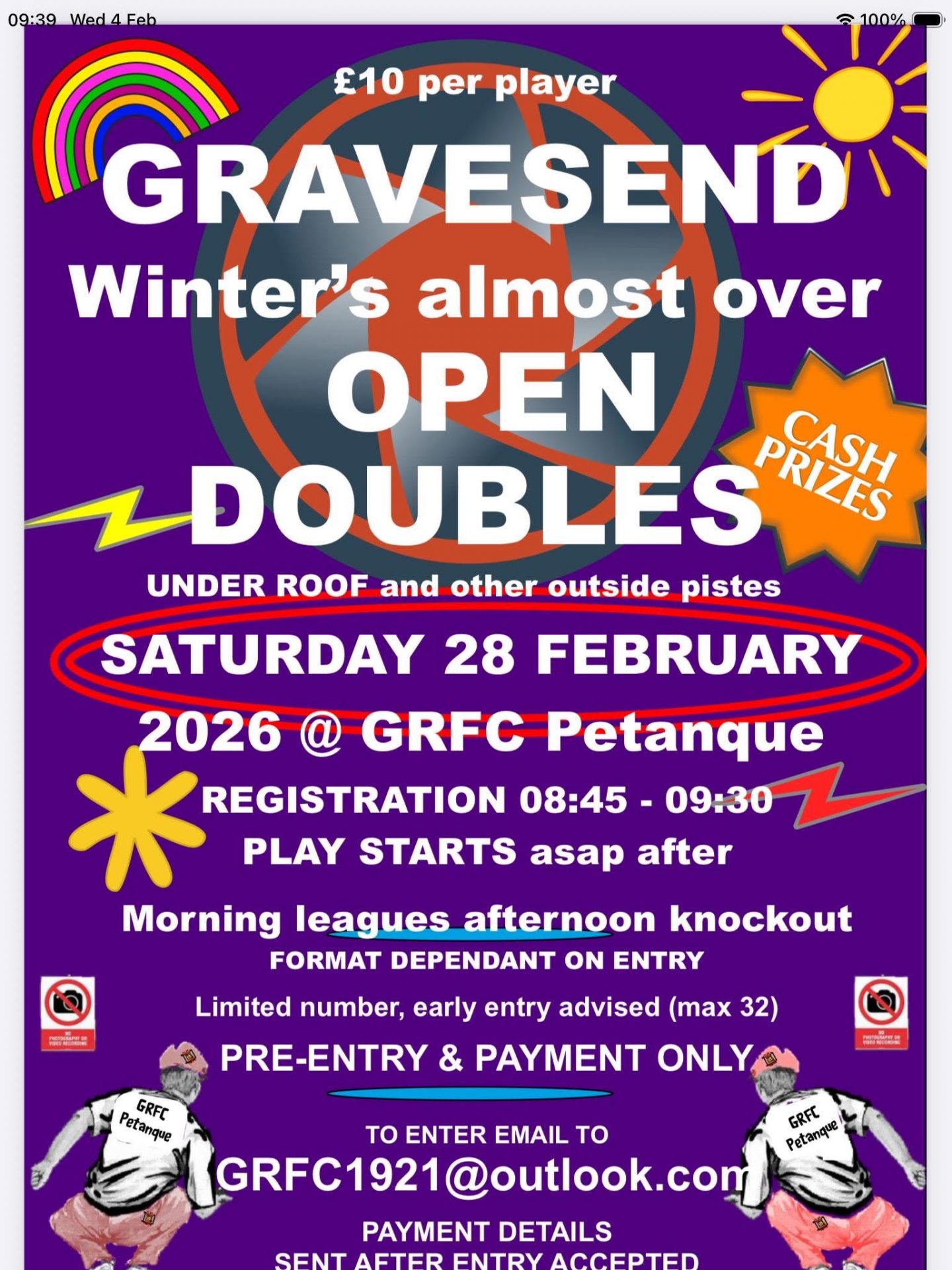 - Pre-entry by email to GRFC1921@outlook.com