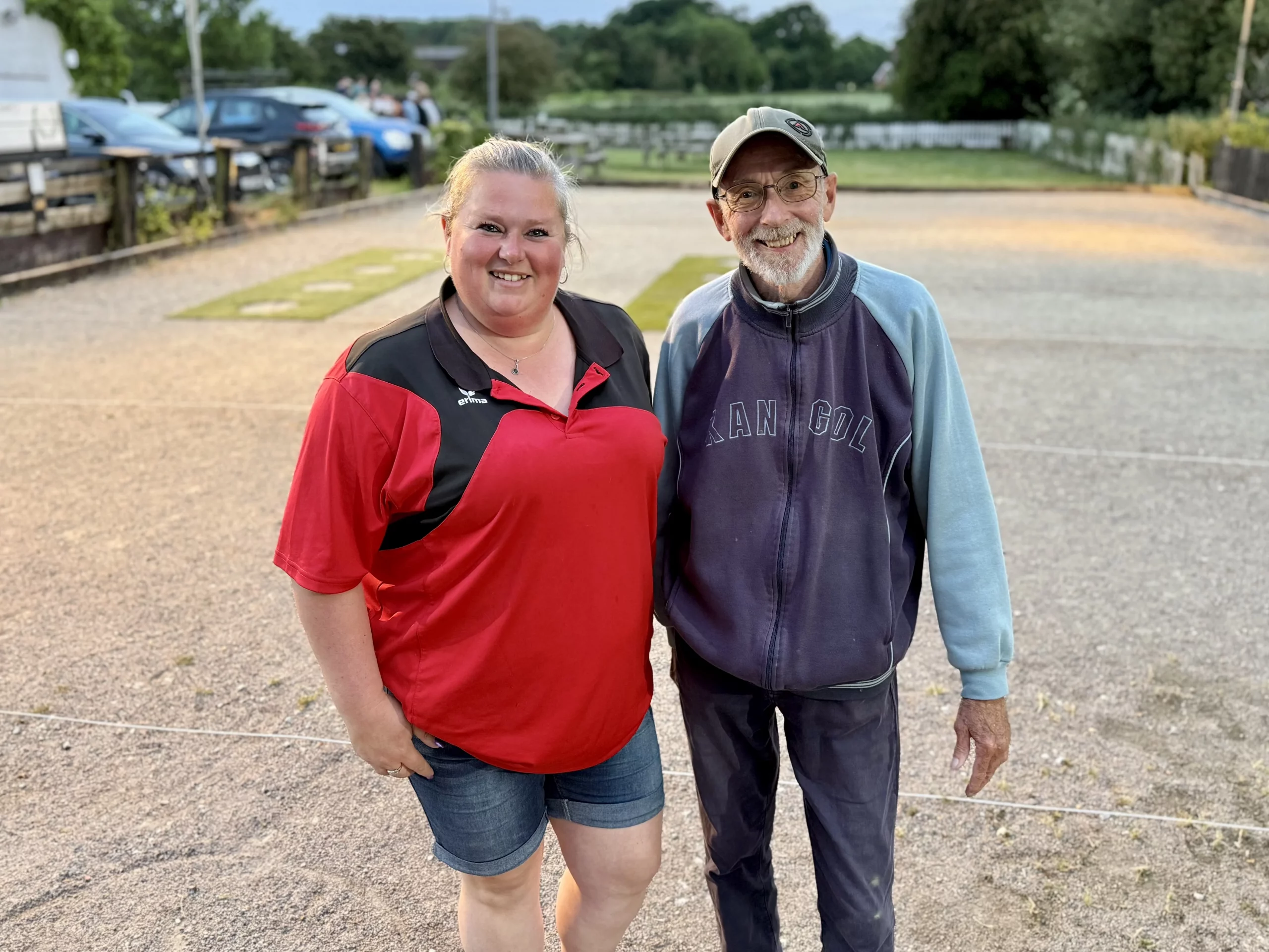 In the final, Barry started well, scoring 10 points in the first round against Becky‘s 5. Becky continued to shoot consistently, scoring at least 3 in the next three rounds. Going into the final round of hitting the jack, the score was 22-19 to Becky. Both players missed the first jack shot, but Becky hit the second to score another 3, meaning Barry had to hit 2 out of his last 3 shots to stay in it. Barry threw a couple of great boules that landed just next to the jack each time but did not move it, leaving Becky with an unassailable 25-19 lead.