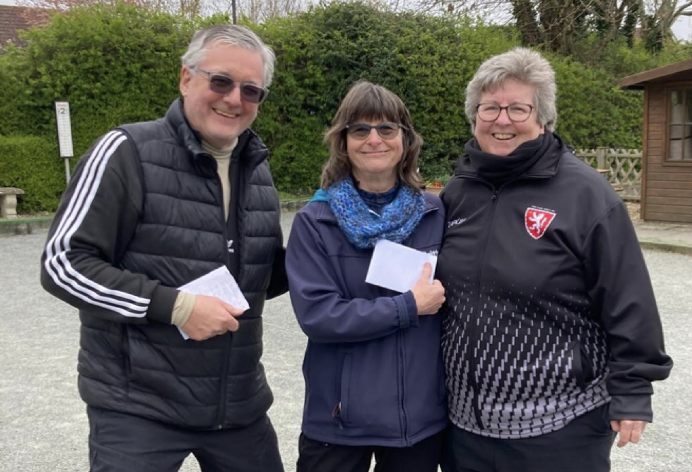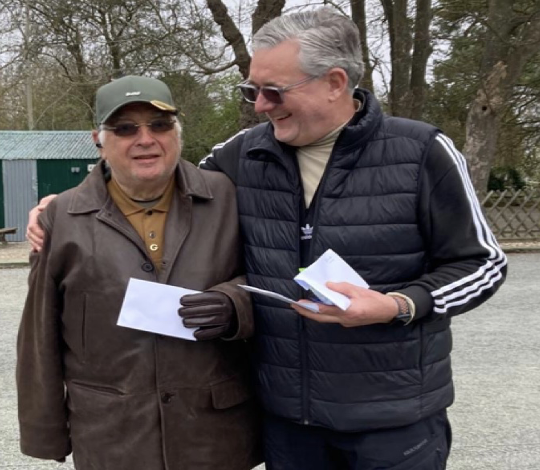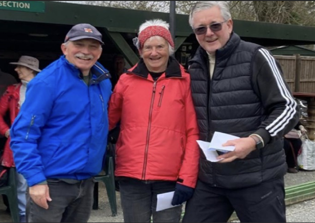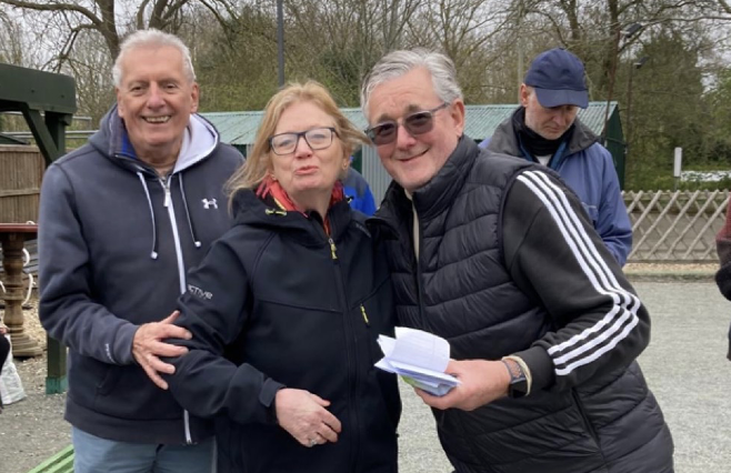 The Weekday Over 60’s competition held at Hartley on 27th March, an open event, was very well attended, with 36 players playing in 18 doubles teams. The weather was cooler than usual for the time of year. The format of the day was 2 timed games of 45 minutes in the morning followed by an hour for lunch. This was followed at once after lunch by the popular 10-minute Jack throwing competition, this month to win a seasonal Easter egg! Then 2 timed games of 45 minutes, the final game having the jack replaced with a mini cream egg! The day started at 10:10am and finished including presentation of prizes by 3:30pm.